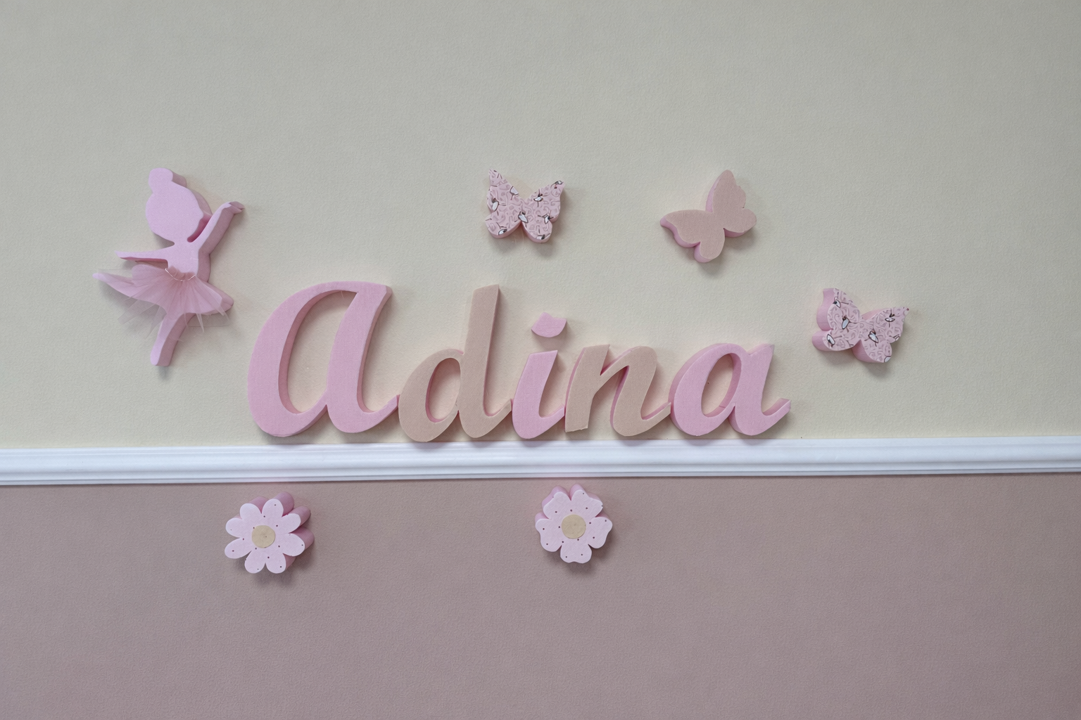 Fedezd fel a babaszoba legújabb trendjét: a falra ragasztható dekorbetűket! Egyedivé varázsolhatod vele a szobát, legyen szó a baba nevéről vagy egy kedves üzenetről. Kiegészítő elemekkel, mint virágok, pillangók, állatok, még kedvesebbé teheted a dekorációt – csak a képzelet szab határt! Minden betű kb. 15 cm magas, a szélessége igazodik az adott betűhöz.